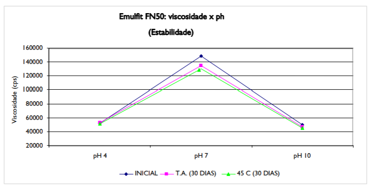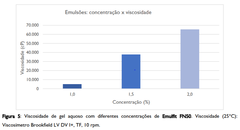O produto Emulfit FN50 tem grande capacidade de espessamento em meio aquoso. Este é capaz de emulsionar e estabilizar a fase oleosa de diferentes emulsões além de conferir diferentes texturas e viscosidades em função de sua concentração.