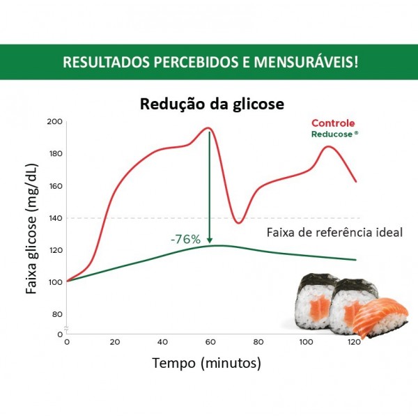 • Reduz até 42% do pico glicêmico, sem hipoglicemia